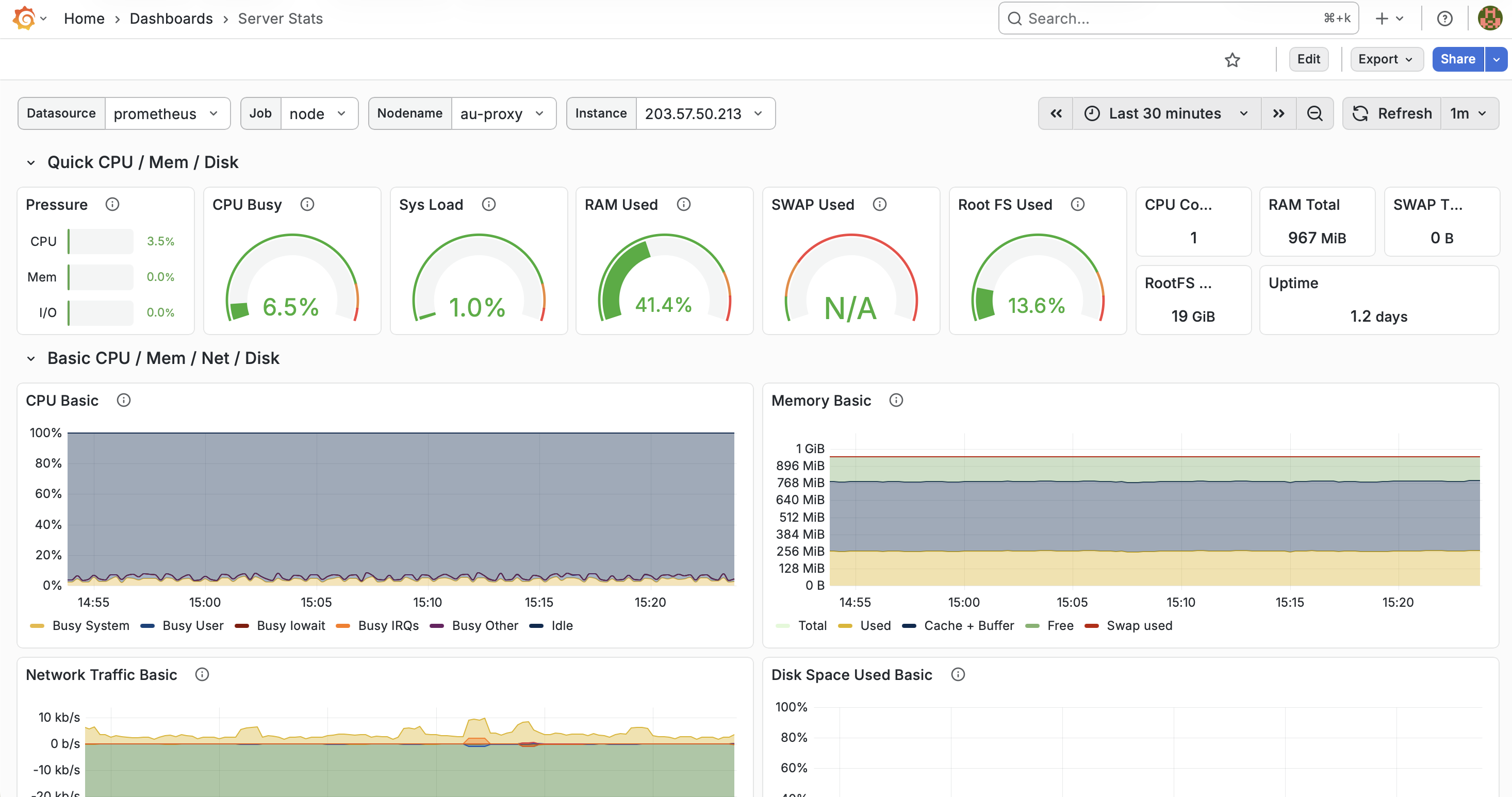 I wanted a flexible self-hosted solution that didn’t run in the cloud while being able to monitor proxmox nodes, vms and more sophisticated monitoring with specific services like databases or kubernetes clusters which hetrixtools can’t do, so I ended up on prometheus and grafana.