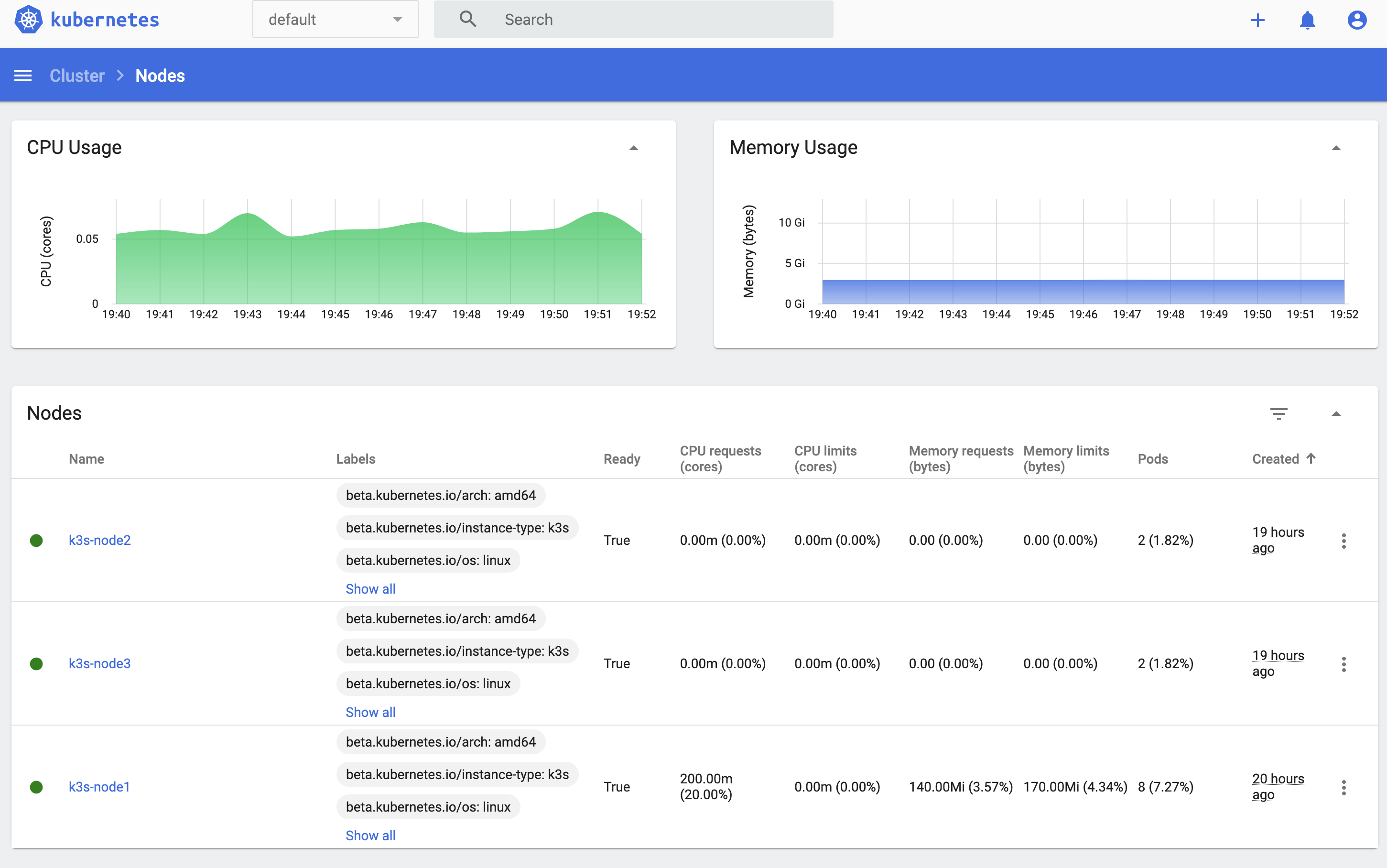 As you can see I have 3 k3s nodes setup, node 1 is the “control plane” and worker node running the dashboard and the other ones are just worker nodes.